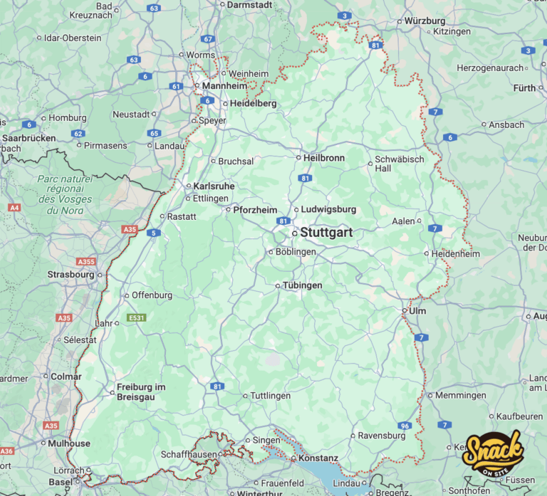 Planen Sie eine Veranstaltung in Baden-Württemberg und sind auf der Suche nach einem Imbisswagen? Mit Snack on Site können Sie ganz einfach einen Foodtruck mieten. Ob Firmenfeier, Stadtfest oder private Feier – wir liefern alles, von knusprigen Pommes bis hin zu herzhaften Snacks wie Currywurst, Bratwurst oder Nuggets.