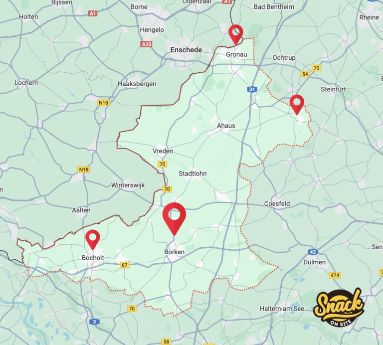 Sie planen eine Veranstaltung in Borken, Ahaus, Bocholt oder einem anderen Ort im Kreis? Mit Snack on Site mieten Sie schnell und unkompliziert einen Imbisswagen oder Pommeswagen – ideal für Betriebsfeste, Stadtfeiern oder Hochzeiten.