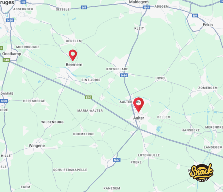 Snack on Site is actief in heel Oost-Vlaanderen en West-Vlaanderen. Binnen Aalter & Beernem komen we o.a. in: