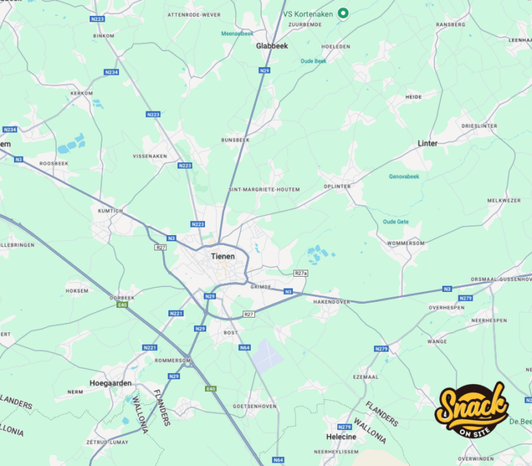 Onze mobiele frituurwagens bedienen de brede regio om Tienen. Hieronder enkele plaatsen waar we actief zijn in de gemeenten. Is uw feestje buiten de regio, geen zorgen, we bakken in heel Vlaams-Brabant.